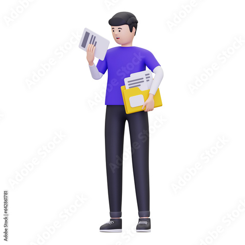 3d man is holding a text file illustration