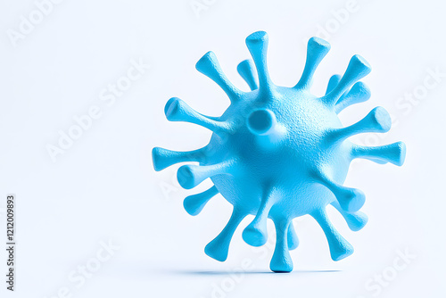 3D model of virus, microscopic organism or pathogen featuring a spherical surface with textured spikes, isolated on white background