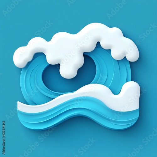 3D Ocean Waves Icon: Rolling Motion of the Sea Illustration Logo