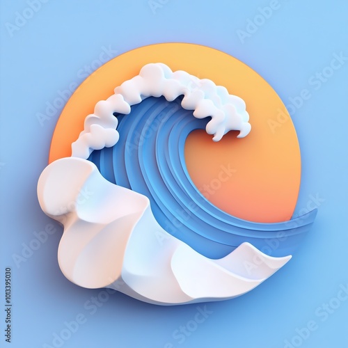 3D Ocean Waves Icon: Rolling Motion of the Sea Illustration Logo