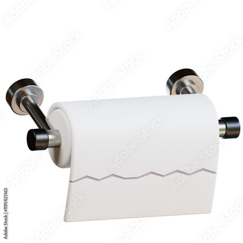 3D Paper towel roll on silver holder adds elegance to kitchen decor. Ideal for household, restaurant, or cleaning supply visuals.