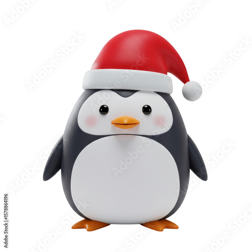 3D Penguin with Santa Hat Festive Winter Holiday Celebration