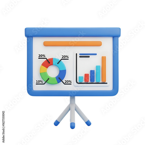 3d presentation board with charts isolated on transparent background