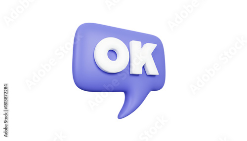 3D Purple Speech Bubble with White OK Text for Confirmation Message