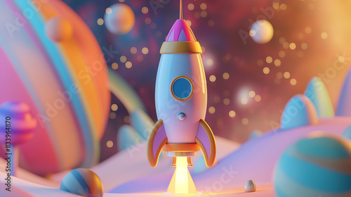 3D Realistic Cartoon Space Rocket with Smoke Featuring Pastel Colors, Rendered with Soft Lighting