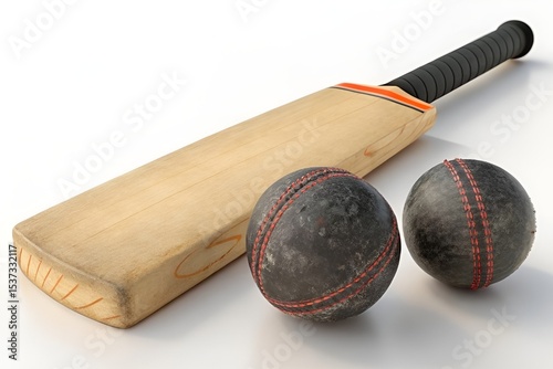 3D Realistic Cricket Bat and Balls on White Background – High-Quality Sports Equipment Render