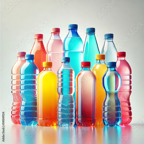 3d realistic vector icon set. Plastic bottles collection. Big, small and different shapes.the different colour of bottle