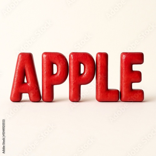 3D Red Apple Text Design with Realistic Fruit Texture