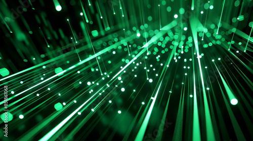 3d render. Abstract fantastic background. Green neon loop. Glowing particles streaming jet curvy trajectory