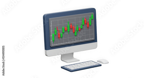 3D Render: Candlestick Chart on Desktop – Financial Market Data Visualization