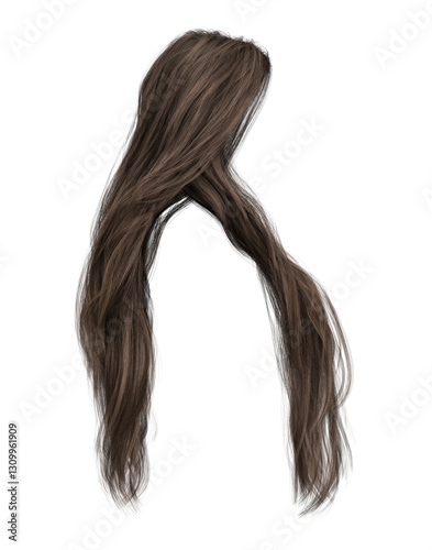 3d render long straight brown hair isolated