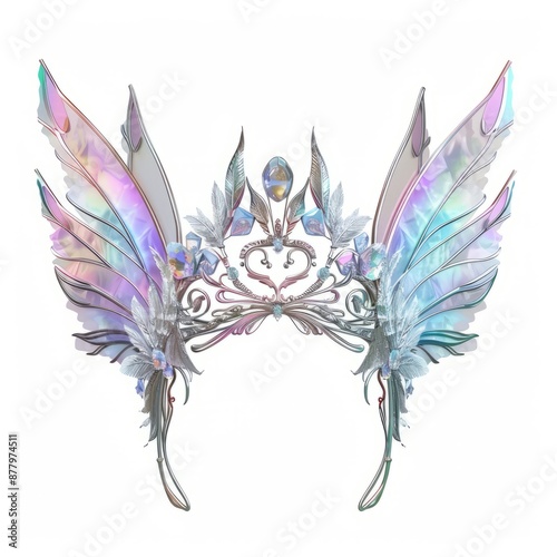 3D Render, Low Poly style of a fairy winged tiara with delicate filigree, on isolated white background, Generative AI