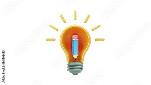3D Render of a Lightbulb with a Pencil Inside, Symbolizing Creativity
