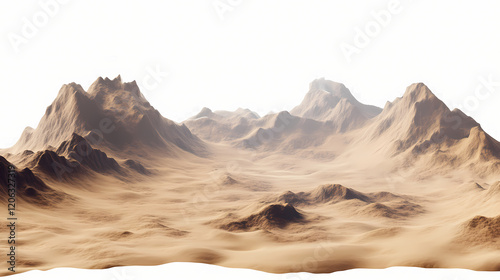 3d render of abstract desert landscape with rugged terrain and peaks, on transparent background. Ivory Desert. Illustration