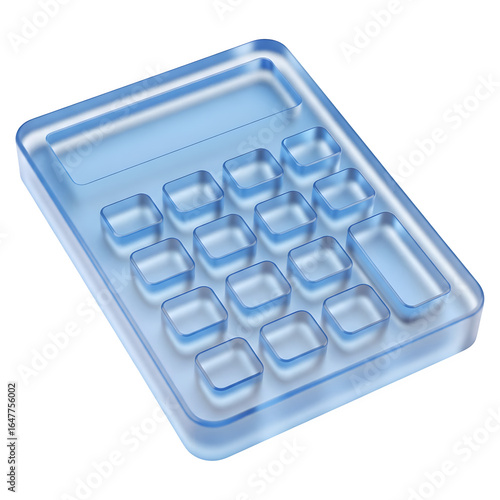 3D Render of Blue Glass Calculator, Transparent Tool, Finance Device ,Transparent Calculator, Transparent Design , Modern tool