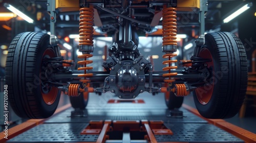 3D Render of Car Suspension System Highlighting Shock Absorption and Stability Mechanism