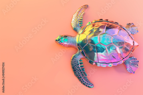 3d render of colorful turtle on peach background