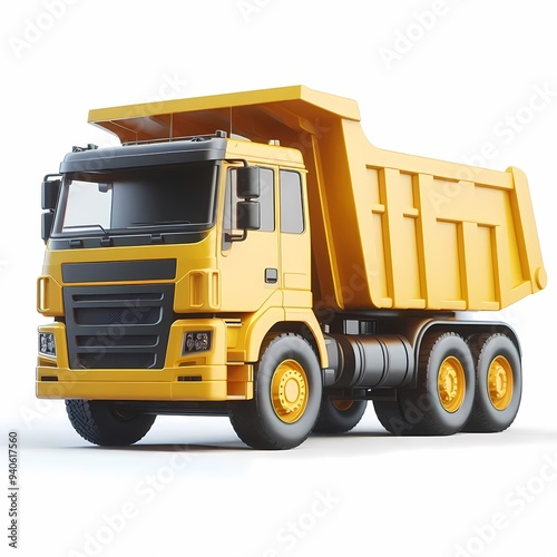 3D Render of Realistic Dump Truck Model isolated on a white background