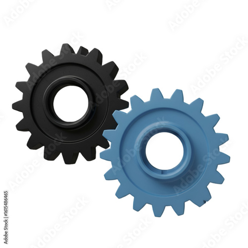3D Render Of Two Gears With Black And Blue Colors On Transparent Background