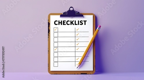 3D Render of Vector Style Checklist with Shallow Depth of Field