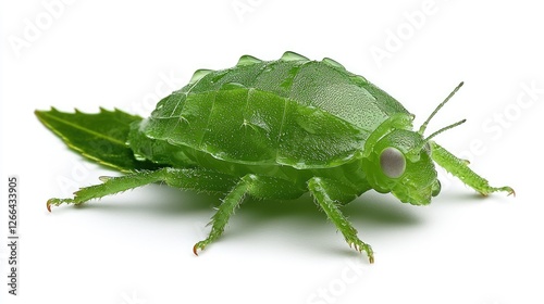 3D Rendered Green Beetle on Leaf Background