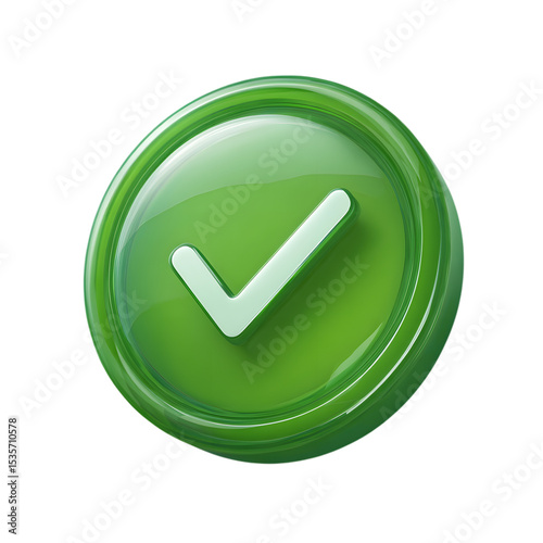 3d rendered green check mark symbol in glossy circular button suitable for web design approval confirmation and positive affirmation