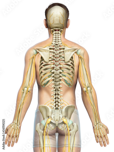 3d rendered medically accurate illustration of the nervous system and skeleton system