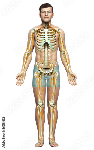 3d rendered medically accurate illustration of the nervous system and skeleton system