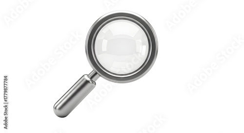 3D Rendered Silver Magnifying Glass with Clear Lens on White Background