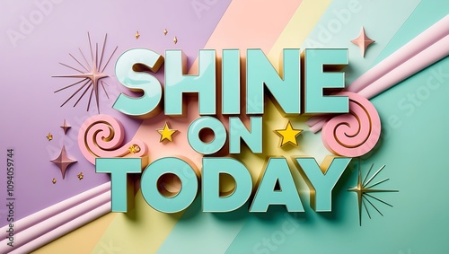 3D rendered text "Shine On Today" with pastel background and decorative elements.