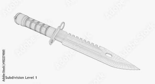 3D rendering - wire-frame gut knife isolated on white background.