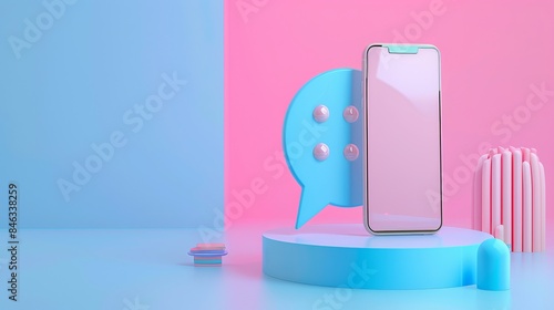 "3D Rendering: Chat Speech Bubble on Smartphone Screen"
