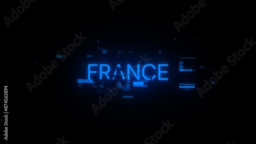 3D rendering France text with screen effects of technological glitches