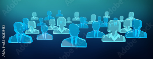 3D rendering group of icon blue people