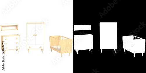 3D rendering illustration of an infant bedroom furniture set
