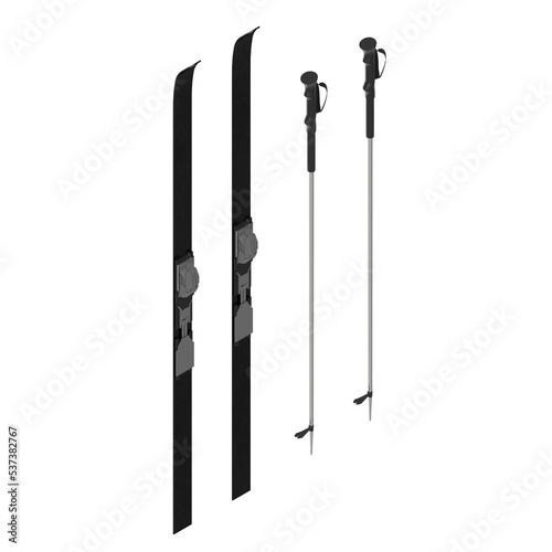 3d rendering illustration of nordic skis with poles