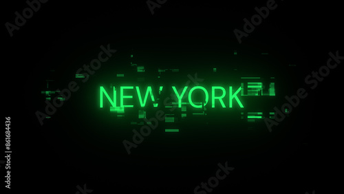 3D rendering New York text with screen effects of technological glitches