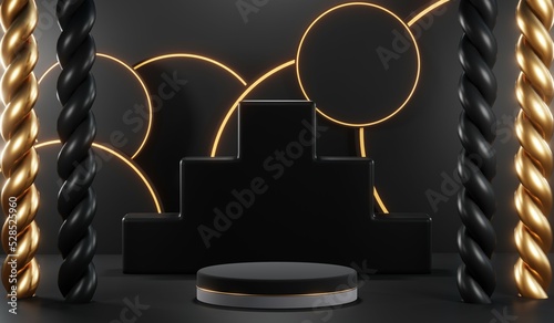 3D rendering of blank product background for cream cosmetics Modern black podium background