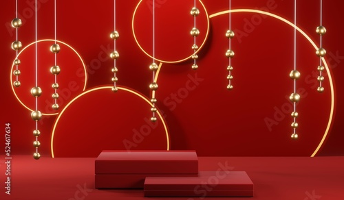 3D rendering of blank product background for cream cosmetics Modern red podium background