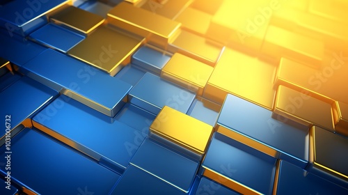 3d rendering of blue and yellow abstract geometric background. Scene for advertising, technology, showcase, banner, game, sport, cosmetic, business, metaverse. Sci-Fi Illustration. Product display