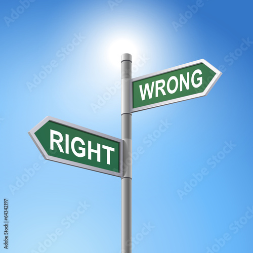 3d road sign saying right and wrong