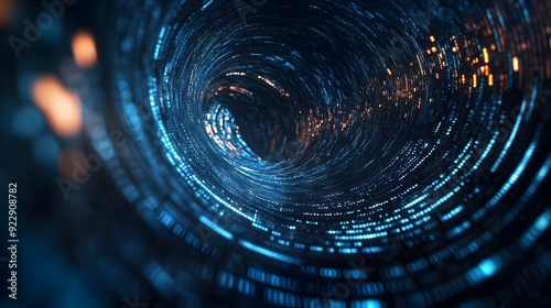 3D Search Engine Icon Emerging from Swirling Data Vortex Symbolizing Digital Discovery