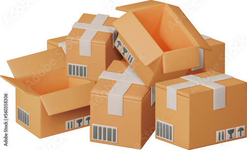 3D Stack of Cardboard Boxes