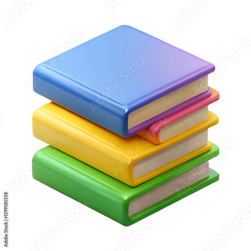 3D Stack of Closed Books Icon in Cartoon Plastic Style – Educational Literature Render
