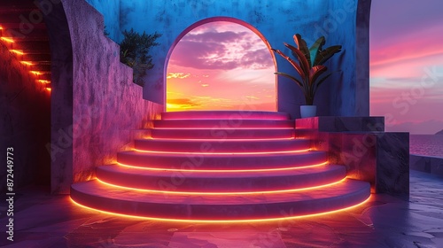 3D stage podium with editable banners and realistic lighting effects. , Minimalism,