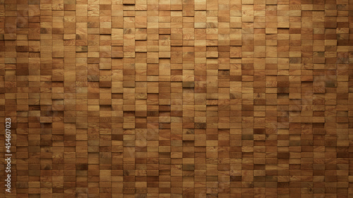 3D Tiles arranged to create a Soft sheen wall. Wood, Natural Background formed from Rectangular blocks. 3D Render