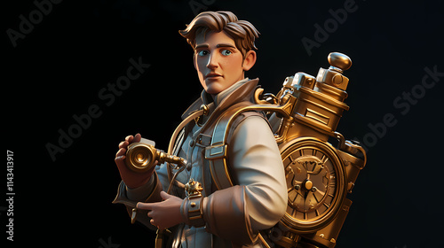 3d time traveler icon: adventurer with chrono device. Chronos. Illustration