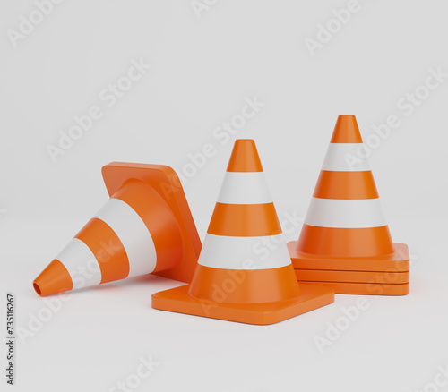 3D traffic cones on white background, 3D rendering