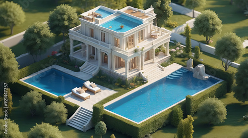 3d vray render, isometric, miniature from a mansion