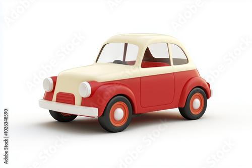 3d white and red car, vintage classic, cartoon, cute, white background for decoration or artwork design. ai generative.